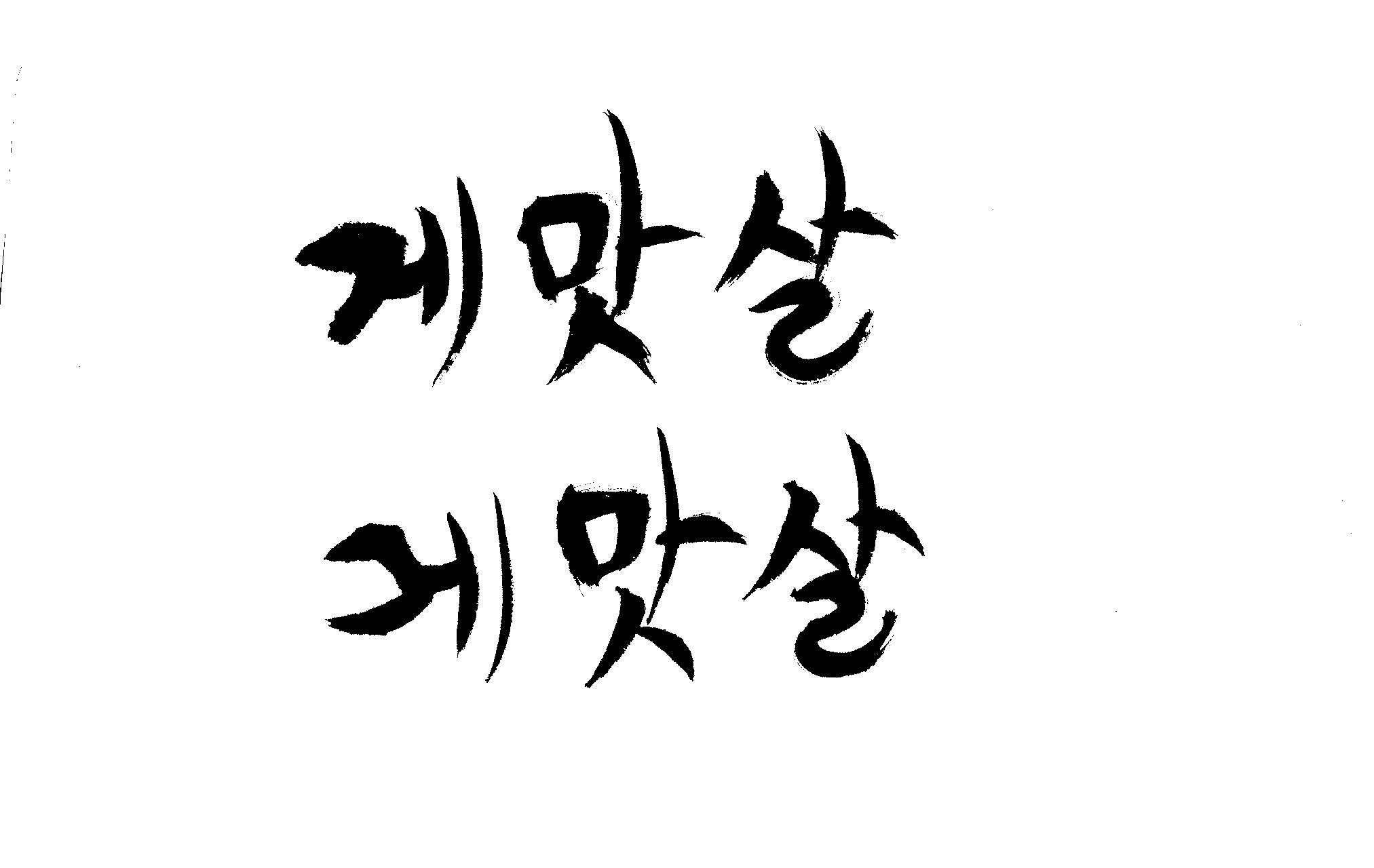 캘리 부탁드립니다. 김철호 일반 0 6424 2009.01.30 09:49 > > 제가 이리저리 써보기도 했으나 너무 이상해서 도움을 받고자 합니다. > 단어는 '게맛살' 입니다. 패키지디자인에 사용할 타이틀입니다. > 급한사항이니 부탁드립니다. 감사합니다. ^^ >